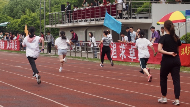 比赛分为田赛径赛,分别在两个不同的场地同时展开。在充满节奏感的音乐声中,运动健儿们或调整呼吸,飞快的穿梭于跑道上,或克服地心引力,跃于半空之中。在田赛和径赛之后,还有一场单脚跳接力趣味比赛,有的同学可以轻轻松松快速跳跃,而有的则一路跌跌撞撞地跳着。妙趣横生的单脚跳比赛为紧张的运动会氛围添上了一抹趣味可爱的精彩,观众在旁边不断地为他们加油呐喊,气氛一度达到高潮。在运动员和观众们的欢呼声中所有的单项比赛圆满结束。