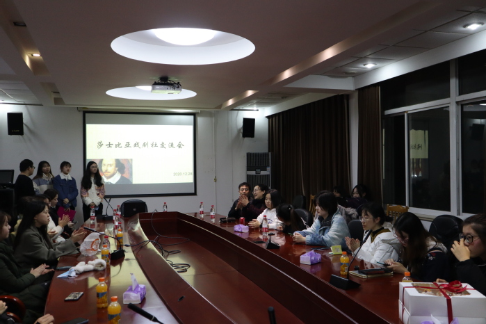 beat365官方网站莎士比亚戏剧社交流会暨《皆大欢喜》剧本启动仪式,于12月28日晚6点至8点在beat365官方网站beat365官方网站306会议室成功举办。莎剧导师组负责人王影君副教授、导师组代表沈谢天副教授、莎剧社代表、第一届舞台演出的观众代表及部分莎剧热爱者出席了本次活动。