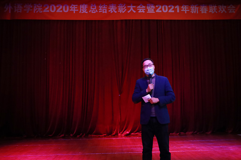 大会在主持人王木子和郑元丰两位老师热情洋溢的开幕词中拉开序幕。首先,在欢快的乐曲中,程旺书记和刘芹院长为荣获2020年度考核优秀人员颁奖。接着,院长刘芹代表学院领导班子总结了2020年的工作,表示刚刚过去的一年是非常不平凡的一年,在这个特殊的年份,beat365官方网站全体教职员工齐心协力,共同奋斗,交出了不错的答卷,对学校各级领导对学院的大力支持以及老师们为学院发展所做的辛勤努力表示感谢,期望 2021年学院发展更上一层楼,并祝愿老师们新年快乐、牛年吉祥如意。