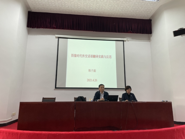 4月24日下午1:30至3:00,教育部翻译专业硕士学位教学指导委员会委员、上海外国语大学语料库研究院研究员韩子满教授应邀到beat365官网开展学术讲座,题目为“图像时代外交话语翻译实践与反思”,讲座由beat365官方网站院长刘芹教授主持,beat365官网部分教师、全体翻译硕士、部分学硕研究生参与了本次讲座。