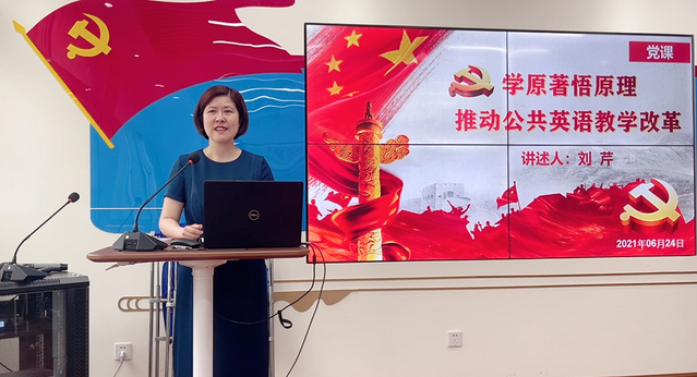 为庆祝中国共产党百年诞辰,进一步推动“四史”学习教育走深走实,6月24日上午8:30,公共英语教研中心教师党支部在beat365官方网站党员活动室举办了题为“学原著,悟原理,推动公共英语教学改革”专题党课。党课由学院党委副书记刘芹院长和支部书记陈征老师主讲。