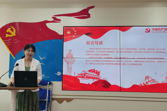 陈征以“学好百年党史,凝聚奋斗伟力”为主题,为党员们讲解了党史发展脉络、学习意义以及党在新民主主义革命时期、社会主义革命和建设时期、改革开放和社会主义现代化建设新时代的重大历史功绩,并带领大家回顾了本学期支部为庆祝建党一百周年所开展的丰富多彩活动,鼓励大家继续全面、系统、持续地精读原著,做到学史增信,学史明理,学史崇德,学史力行。