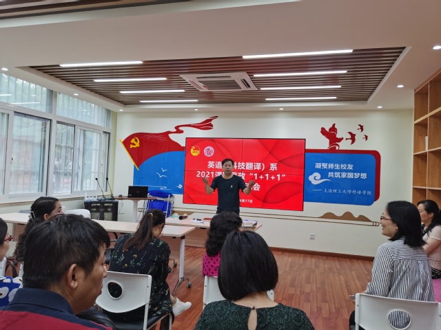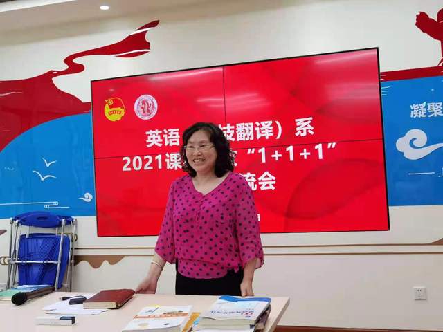 为深入贯彻落实《高等学校课程思政建设指导纲要》,充分发挥名师优课在课程思政教育教学改革方面的引领示范作用,英语(科技翻译)系成功举办了课程思政“1+1+1”系列教学活动。