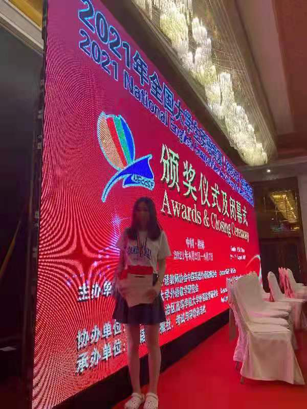 8月2日至7日,2021年全国大学生英语竞赛(NECCS)全国总决赛在广西壮族自治区桂林市举行。我校中英国际学院2019级本科生柏舒同学作为2020年特等奖选手代表我校参加总决赛,荣获“演讲赛”三等奖、“风采大赛”三等奖以及“优秀主持人”称号,这是我校学生自参加这项比赛以来取得的历史最佳成绩。