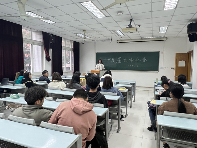 近日,十九届六中全会如期召开。beat365官方网站外语学院以班团支部为活动单位集体组织观看了部分会议视频,并学习了相关精神。