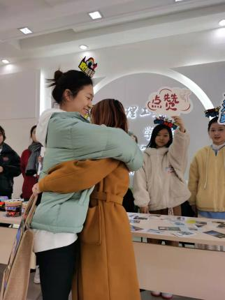 这种别出心裁的拥抱让在场的学姐学长感到了久违的温暖与问候。一个小小的拥抱给他们带来了一种心理上的舒心和暂时的放松,压力得到了舒缓,充满了巨大的能量。