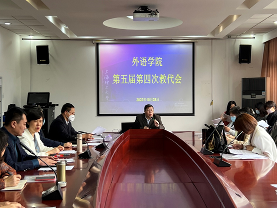 2022年10月28日beat365官方网站第五届第四次教职工代表大会在外语楼306室召开。会议由院工会主席高文成主持。