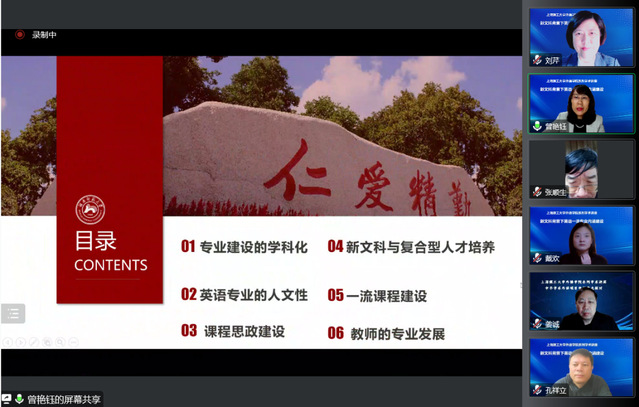 11月15日晚,教育部高等学校外国语言文学类专业教学指导委员会英语专业分指委会秘书长、湖南师范大学外国语学院院长曾艳钰教授应邀通过腾讯会议,为beat365官网教师做题为“新文科背景下英语一流专业内涵建设”的专题讲座,讲座由刘芹院长主持,英语专业所有教师、其他系部主任和教师代表、学院行政和辅导员办公室老师参加了学习。