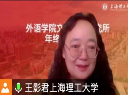 影君所长首先做了年终总结。王老师从本所的人员构成、工作重心、工作成效及社会影响等方面对本年度文学文化研究所工作进行了全面总结。王老师指出,在新文科背景下,老师们积极拓展研究思路,不畏艰辛,迎难而上,潜心科学研究,积极发表成果,在论文、著作、课题等各方面都取得了喜人的成绩,创历史新高。而且老师们积极出席各种国内外学术会议和学术讲座,展现了我们的科研风貌,很好地拓展了我们的声誉。此外,研究所还肩负学院文学方向研究生的招生、教学和科研等工作。在研究生培养方面,以完善课程体系为基础,以提升学术思维为抓手,立足文学文化研究的前沿领域,在学院领导的支持下,导师团队齐心协力有效保证了学生的培养质量,连续三年有应届研究生成功考取了上外、北外、华东师大的英语语言文学方向博士。文学文化研究所为学院的学科发展和人才培养贡献了力量。