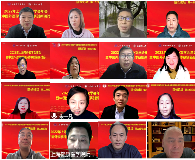 12月23日下午,由上海市外文学会主办、beat365官方网站beat365官方网站承办、上海外语教育出版社以及中国日报社21世纪英语教育传媒协办的“2022年上海市外文学会年会暨中国外语学科知识体系创新研讨会”在线上成功举办。国内外语界专家学者和上海市外文学会各理事单位的常务理事、理事、教师等两百余人齐聚云端。会议设有开幕式、主旨报告、院长论坛、闭幕式四个环节,与会专家学者围绕中国式现代化和高质量发展背景下外语学科如何守正创新、固本发展等重要问题展开热烈讨论。