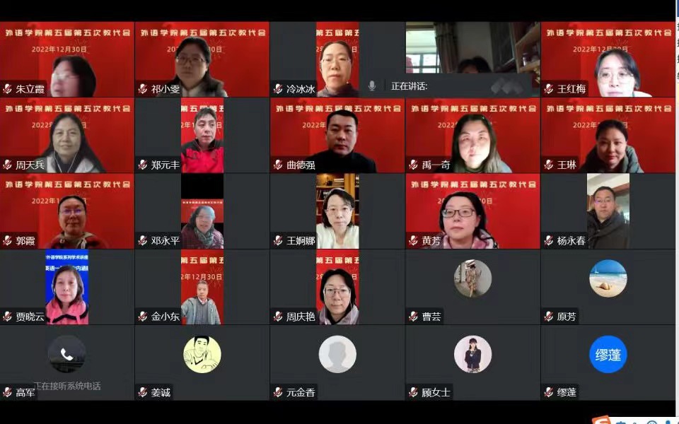 2022年12月30日,beat365官方网站第五届第五次教代会在腾讯会议线上召开。本次大会应到正式代表46名,实到43名,请假3名。会议由学院工会主席高文成主持。