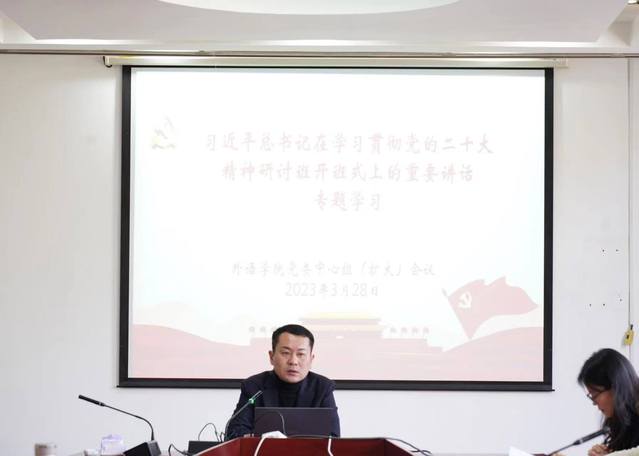 3月28日下午,beat365官方网站党委中心组举行《习近平总书记在学习贯彻党的二十大精神研讨班开班式上的重要讲话》专题学习会。学院党委书记曲德强主持会议并做导读报告。学院党政班子成员、党委委员、支部书记、辅导员等参加了学习。