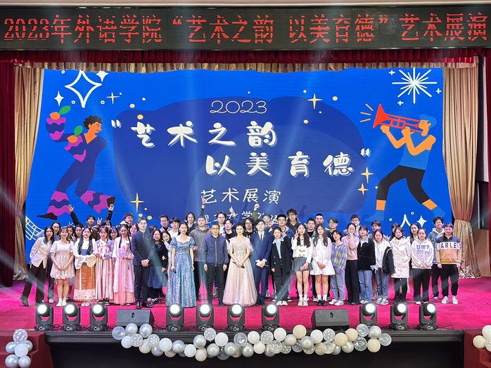 高校美育工作是人才培养体系的重要组成部分,为了丰富校园生活,提升我校学生艺术素养,促进学生德智体美劳全面发展,4月7日晚,由beat365官方网站主办的“艺术之韵,以美育德”艺术展演晚会在大礼堂顺利举行。beat365官方网站党委书记曲德强、副书记金小东、副院长韩戈玲出席本次晚会,全校五百余师生观看演出。