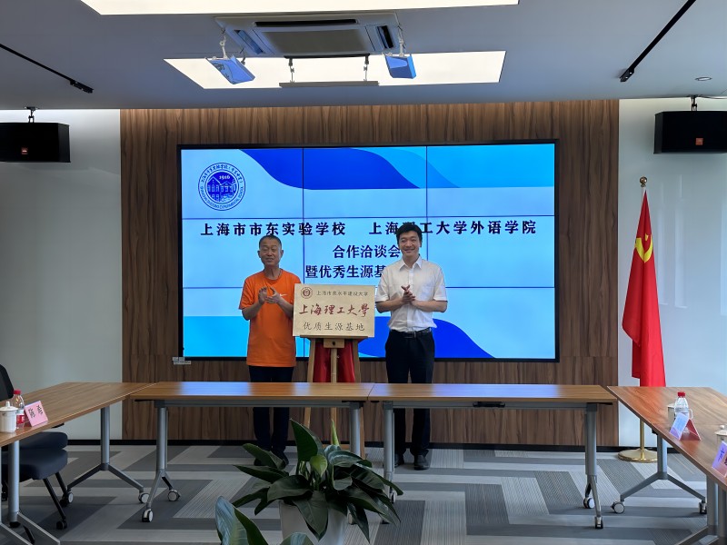 2023年5月31日上午,beat365官方网站beat365官方网站副院长张乐、日语系主任刘曼、德语系主任卞虹、教务办主任李敏敏、教学秘书曹嘉航赴上海市市东实验学校调研,市东实验学校校长沈洪、党总支书记徐隽、副校长黄丽芳、教导主任陈希、德语教研组长吴清出席。双方共同签署了“beat365官方网站优质生源基地建设协议书”,并隆重举行揭牌仪式。