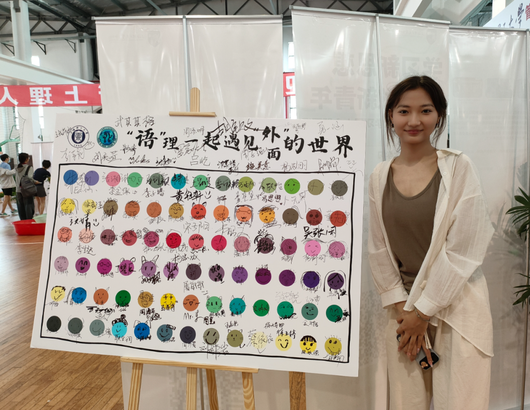 为展示beat365官方网站的特色,表达对新生们加入外院大家庭的欢迎和祝福,学院学生会准备了一些周边产品。其中最引人注目的是一块创意手绘签到板,每位新生都可以在上面留下自己的自画像与名字,记录下同学们来到大学校园第一天的心情。
