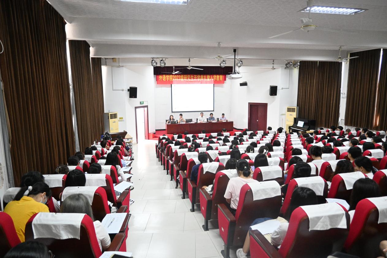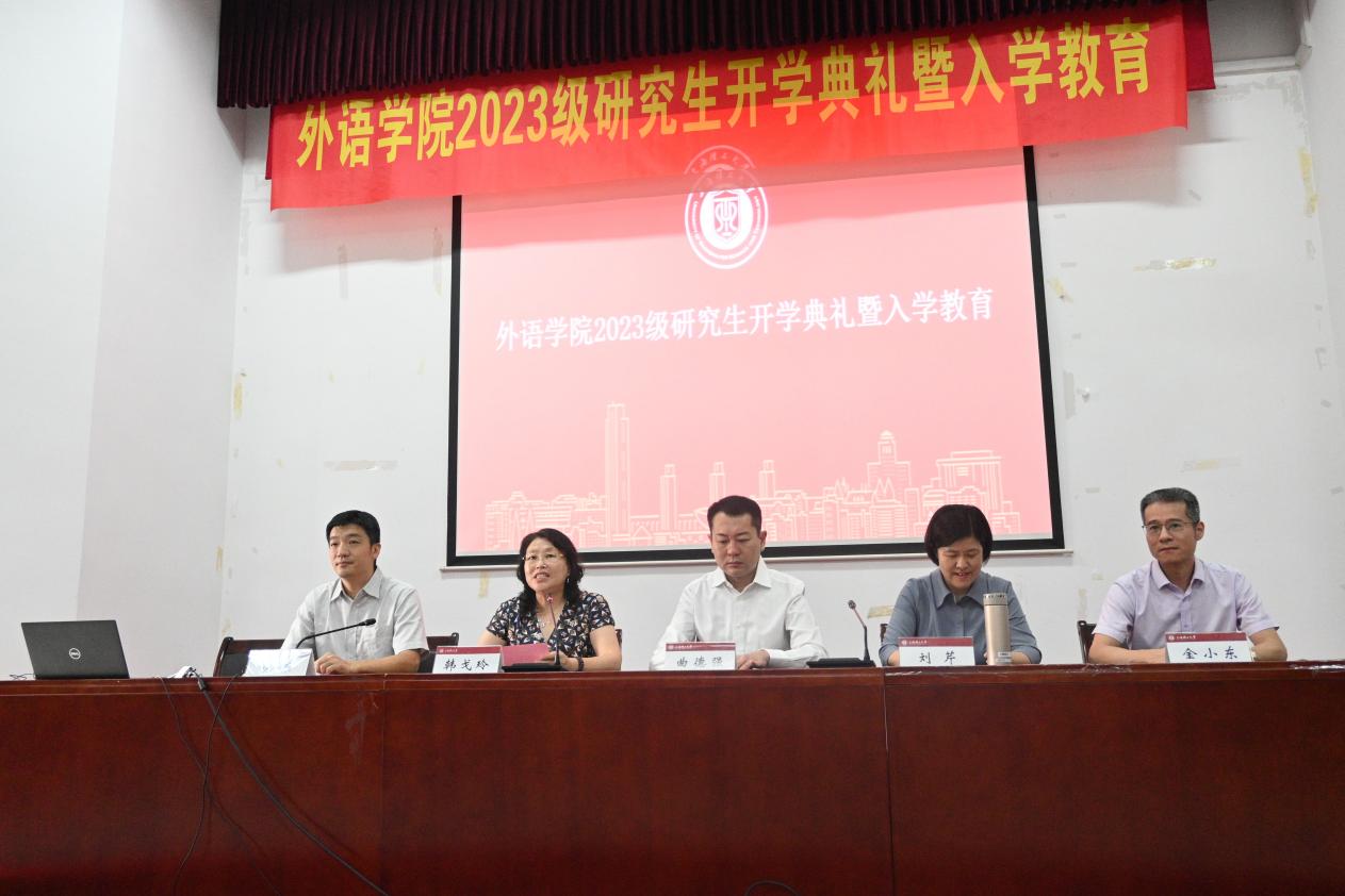 9月4日上午8:30,beat365官方网站2023级研究生开学典礼在外语楼报告厅隆重召开。学院党委书记曲德强、院长刘芹、副院长韩戈玲、党委副书记金小东、副院长张乐及全体研究生导师出席本次大会,大会由副院长韩戈玲主持。