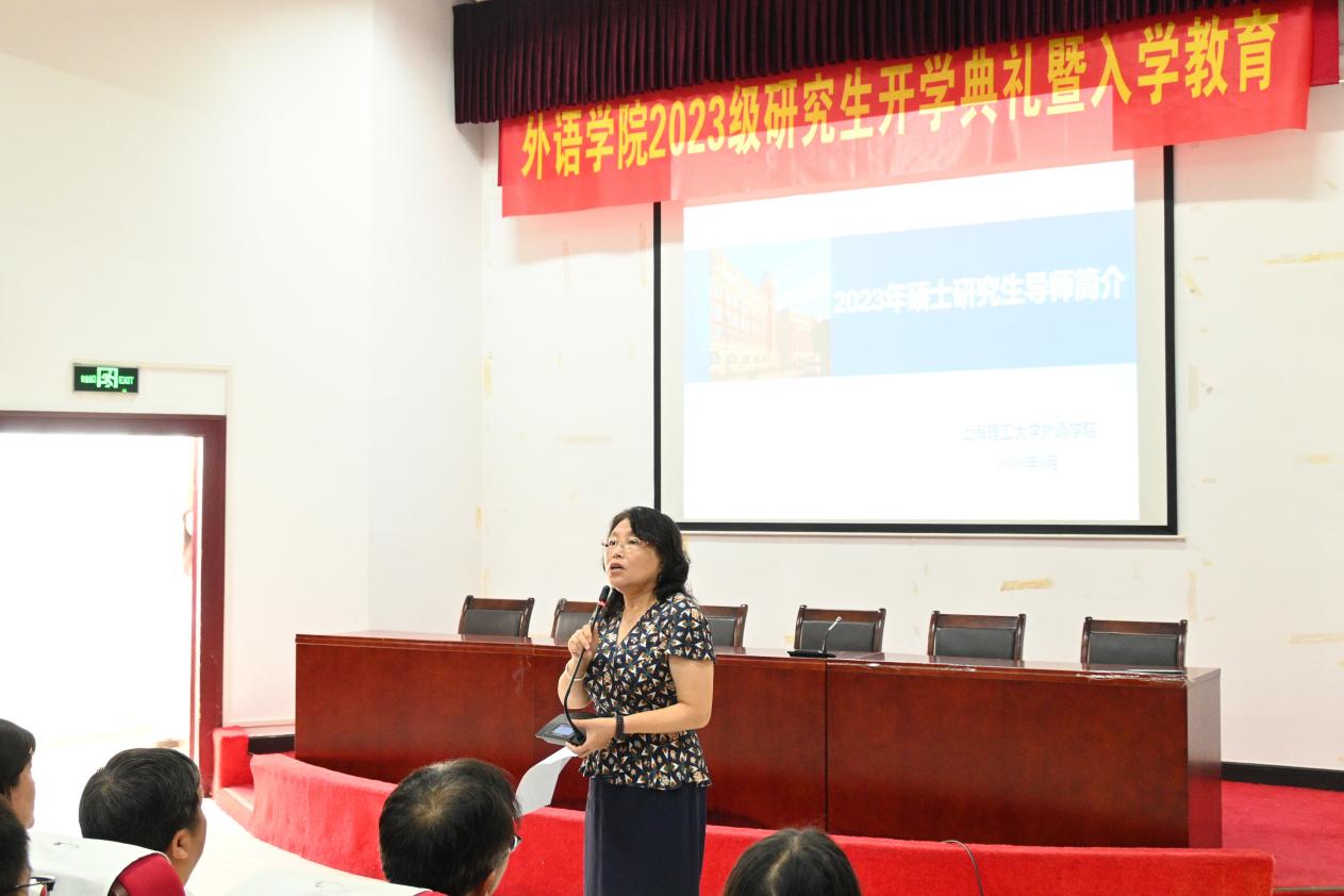 在五分钟的休息之后,副院长韩戈玲主持研究生导师见面大会。各位研究生导师一一上台与研究生新生认识,介绍自己的研究方向。