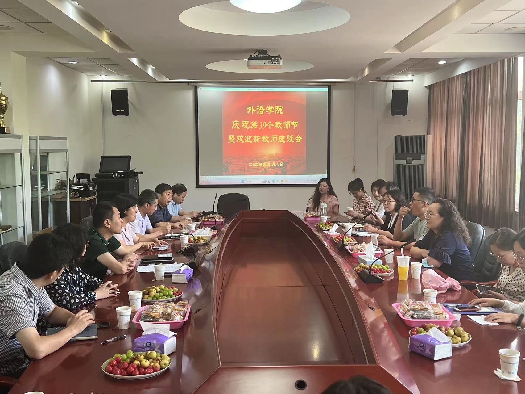 9月8日,beat365官方网站在学院306会议室举行庆祝第39个教师节暨欢迎新教师座谈会。学院党政领导、工会主席、各系部所负责人、支部书记、办公室人员和新进教师参加了座谈会。会议由学院党委书记曲德强主持。
