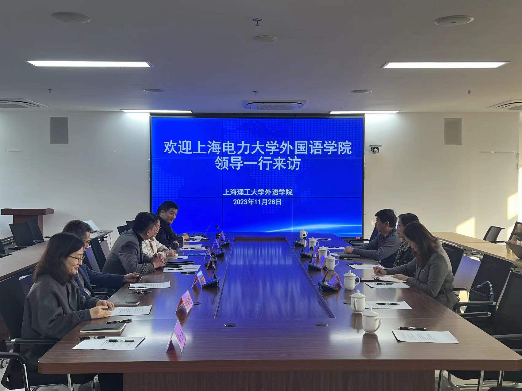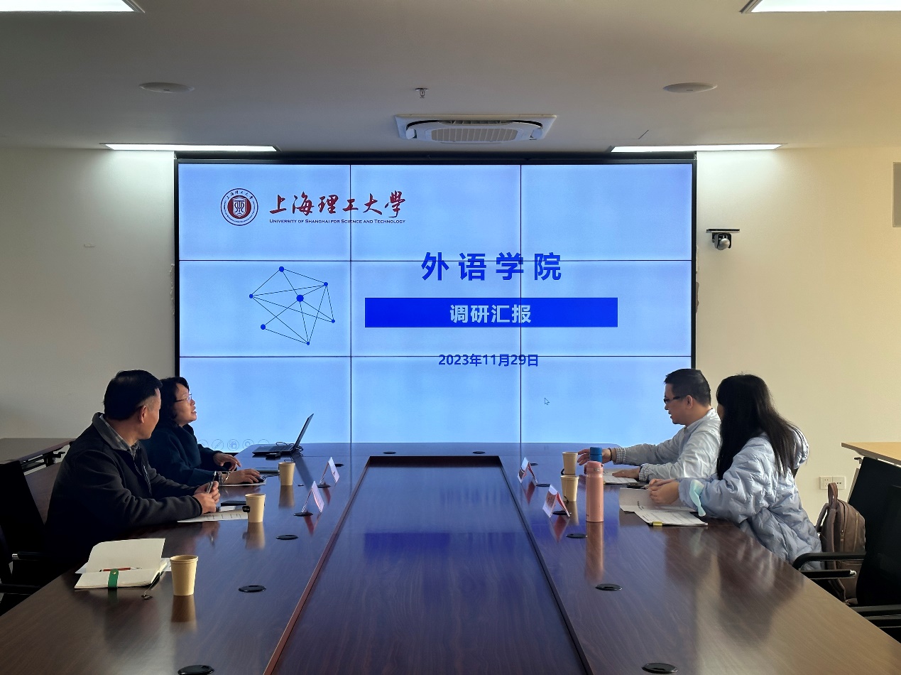 11月28日下午,上海电力大学外国语学院党委书记余静和院长潘卫民一行来beat365官网调研。beat365官方网站党委书记曲德强、副院长韩戈玲、党委副书记金小东、副院长张乐和相关教师参加了调研会议。会议由韩戈玲主持。