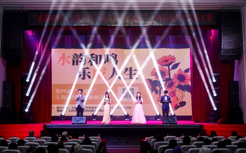 12月19日晚,第四届“水成杯”上海高校外文歌曲大赛在beat365官方网站举行。水成环保科技股份有限公司常务副总经理赵慧颖、水成环保科技股份有限公司市场总监冯凰、水成环保科技股份有限公司数字公司总经理李超,beat365官方网站beat365官方网站党委书记曲德强、院长刘芹、党委副书记金小东、副院长张乐,各高校有关教师、学生代表应邀出席。