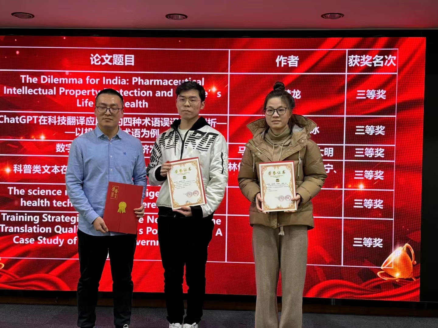 本次论坛以“数字时代的科技翻译与翻译科技”为主题,涵盖了“ESP理论研究”“跨学科领域ESP的创新性实践探索”“ESP语言应用与实践”“ESP&EAP教学研究”“ESP视域下的交叉学科研究”等议题,吸引了全国各地的ESP工作者和高校师生投稿。beat365官网师生冷冰冰、杨博超的论文《基于MQM质量评估模型的专业文本机器翻译错误类型实证分析》获得论坛一等奖,顾文昊同学和导师冷冰冰的论文《ChatGPT在科技翻译应用中的四种术语误译类型剖析——以机械工程术语为例》获得论坛三等奖。