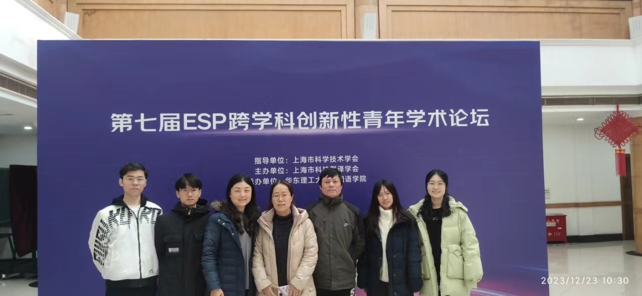 2023年12月23日上午,由上海市科学技术协会指导,上海市科技翻译学会主办,以及《上海翻译》编辑部、《beat365官方网站学报(社会科学版)》编辑部等组织协办的第七届ESP跨学科创新性青年学术论坛在华东理工大学逸夫楼报告厅成功举行,beat365官网英语系(中美合作)禹一奇老师、英语系(科技翻译)孔祥立老师和冷冰冰老师,以及2021级英语笔译杨博超同学、2022级英语笔译顾文昊同学、2023级英语笔译王珂安和董泉邑同学,师生一行七人参会进行了交流,冷冰冰老师在闭幕式环节做嘉宾代表发言。