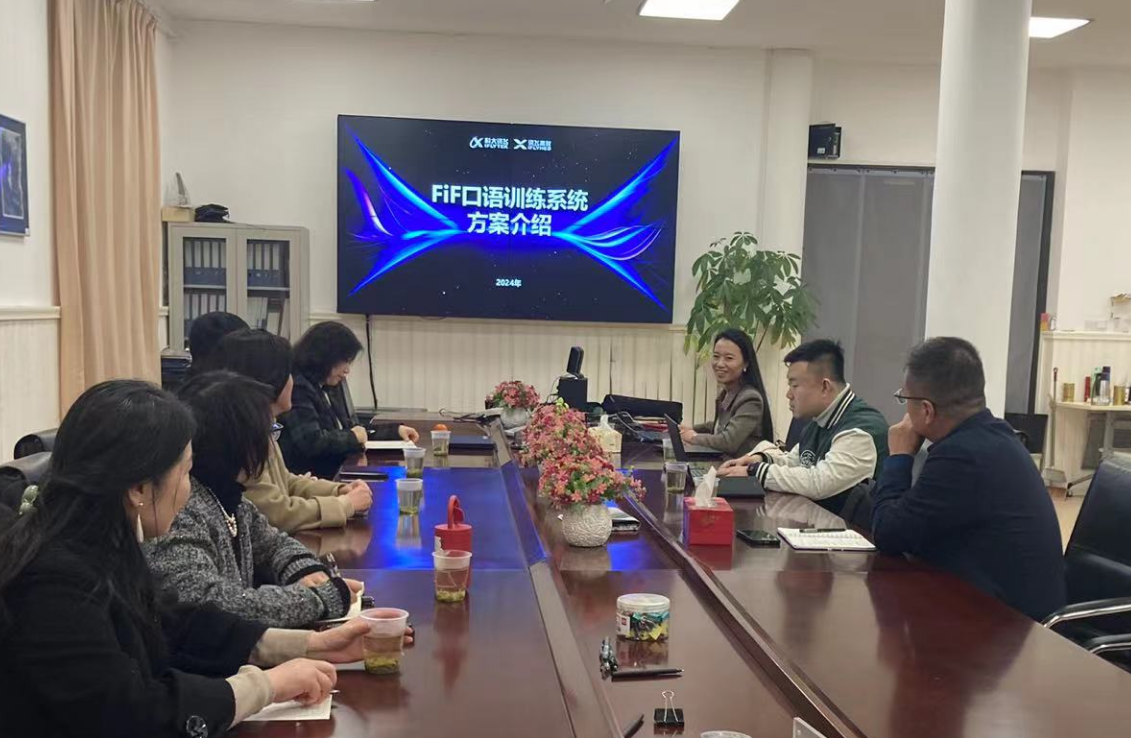 会上,科大讯飞高教上海区负责人轩静静介绍了讯飞AI口语训练系统,阐述了AI技术在英语口语教学、人才培养、自适应学习平台等方面的构建思路,讲解其助力智能语言服务人才培养的价值,并结合相关成功案例介绍了从课程到专业的应用与发展。随后,双方在人工智能应用、课程建设、资源共建、拔尖创新人才培养等落地细节方面进行了深入细致的交流,就授课视频的知识点切分、提炼和整合技术,以及知识图谱的建立展开了深入讨论。