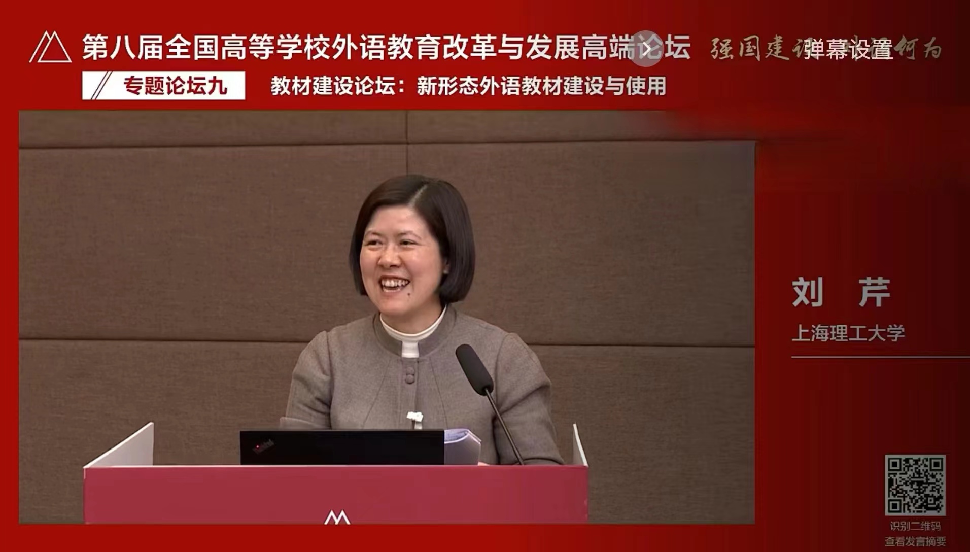 本届论坛主题为“强国建设 外语何为”。当前,适逢世界前所未有之大变局,我国积极推进强国建设,参与全球治理。高等外语教育肩负培养大批有家国情怀、有全球视野、有专业本领的高素质复合型人才的历史使命,坚定不移用习近平新时代中国特色社会主义思想铸魂育人,主动识变应变求变,探索高等外语教育高质量发展创新路径,为全面建设社会主义现代化国家和实现中华民族伟大复兴提供坚强的外语人才支撑。论坛设置主旨报告、专题论坛和教指委论坛三部分。主旨报告围绕外语教育体系建设、外语学科建设、国际传播人才培养、外语教育数字化转型和教师数字素养提升等重要议题,以更高远的历史站位,全面规划和指引高等外语教育服务强国建设发展方向;专题论坛聚焦人工智能与外语学科建设、大学英语教育、英语类专业与多语种教育、“理解当代中国”课程与赛事、新形态教材以及教师数字化素养等重要议题;教指委论坛立足党和国家重大战略需求,研判高等外语教育发展宏观形势,推动高等外语教育迎应挑战、把握机遇,着力提高外语人才自主培养质量。刘芹应邀主持教材建设论坛,与参会的外语专家和同行共同探讨新形态外语教材的建设与使用,积极交流新形态教材的编写实践与思政融入,共探多元化外语人才培养新路径,助推外语教育数字化转型与融合创新,受到论坛专家与同行的一致好评。
