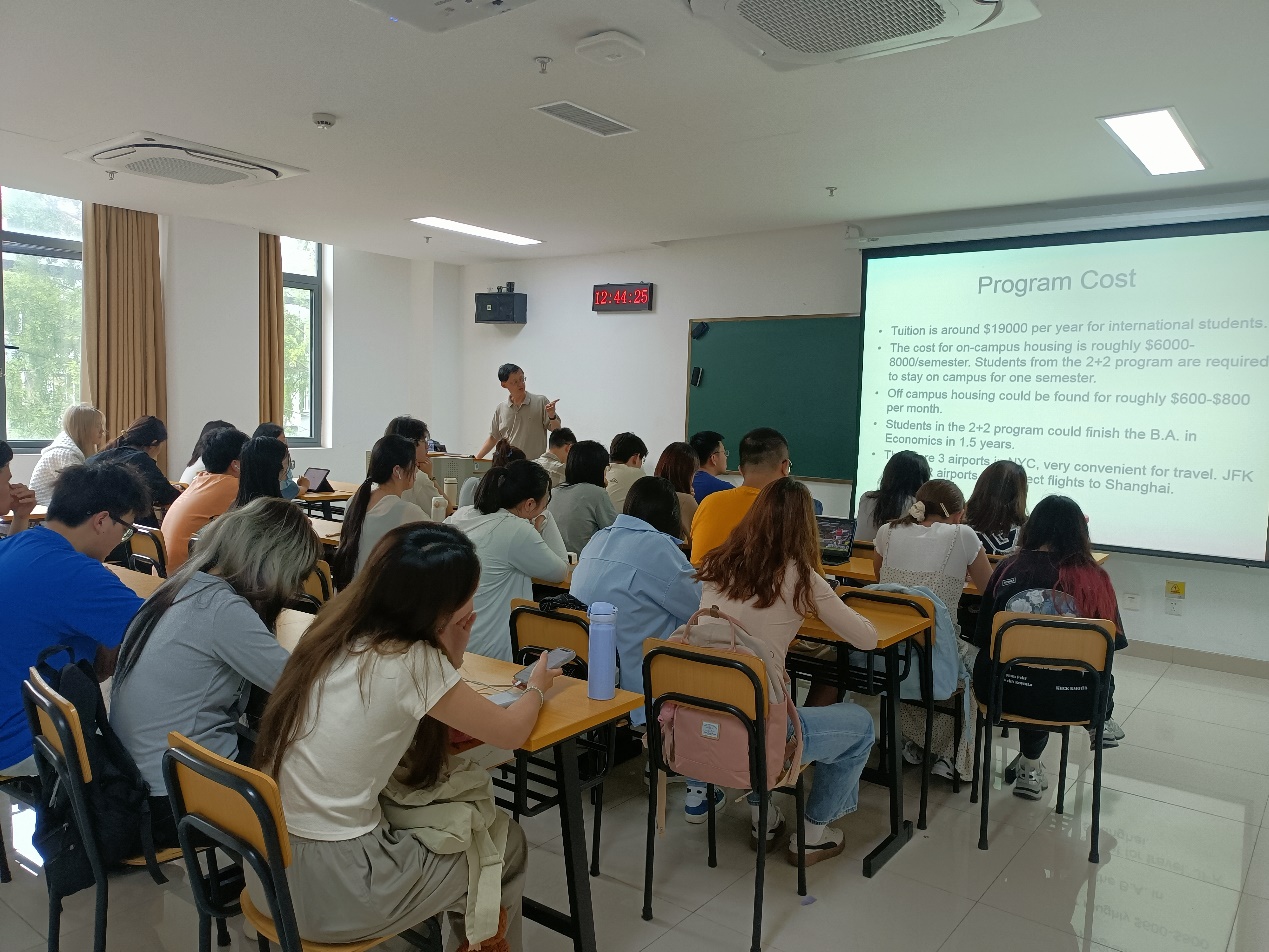 6月7日,beat365官方网站举办与美国纽约市立大学皇后学院联合培养本科双学位项目的宣讲会。此次宣讲会特别邀请了项目美方负责人、皇后学院经济系副系主任Tao Wang教授亲临现场,为师生们详细介绍项目情况。2023级英语(中美合作)专业的学生积极参与。