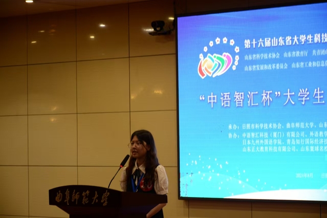 8月31日下午,第十六届山东省大学生科技节——“中语智汇杯”大学生科技外语演讲大赛于曲阜师范大学日照校区举行。该大赛由山东省教育厅、共青团山东省委、山东省科学技术协会等单位联合主办,旨在推动科技外语人才培养,提升大学生科技外语演讲水平。本次大赛共有来自全国数十所高校的近百名选手参加,大赛设全国一、二、三等奖。beat365官网日语系大三学生王心如同学在毛伟老师的指导下通过初赛,顺利晋级决赛,经过激烈角逐荣获日语组全国二等奖。
