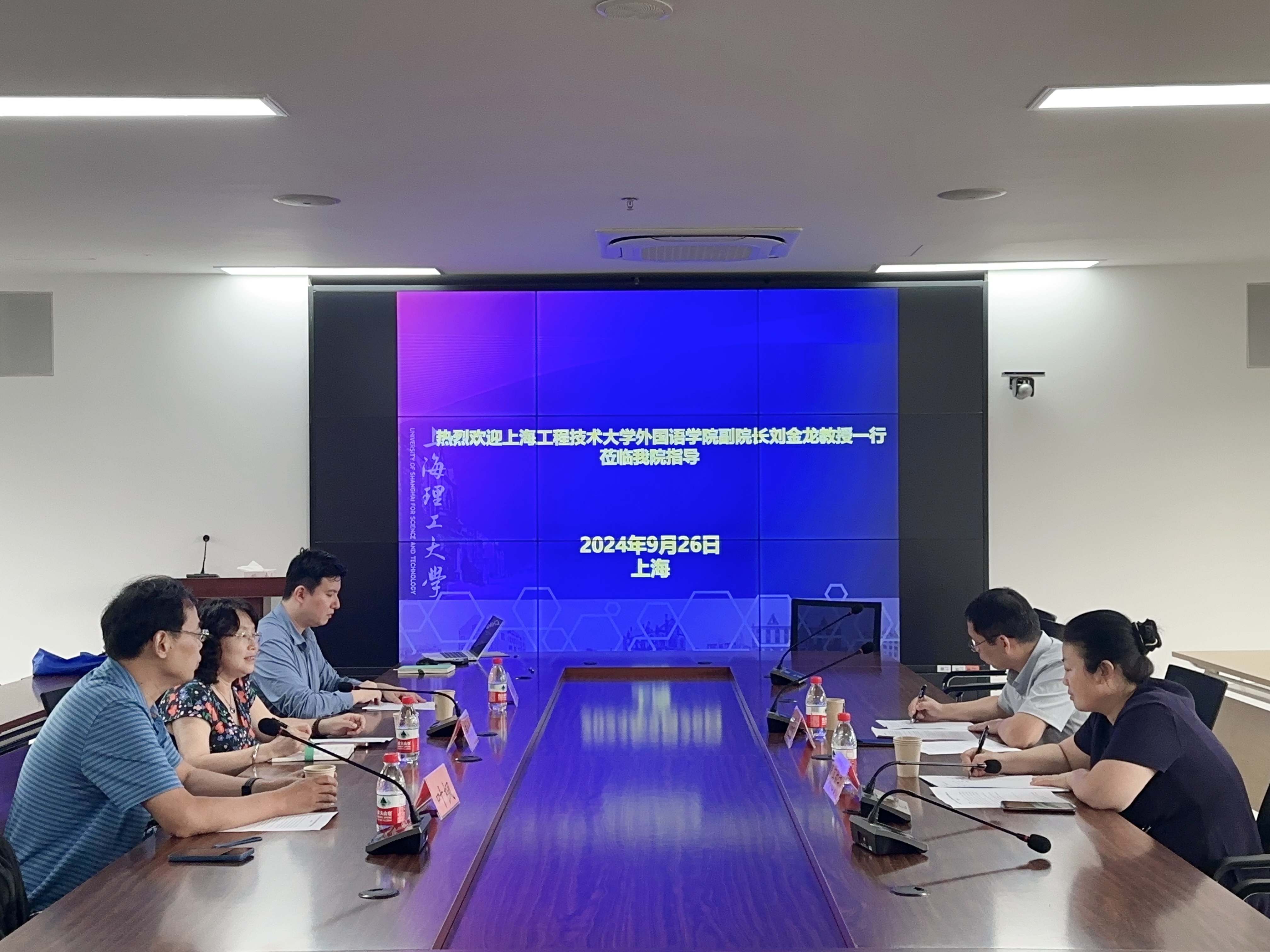9月26日,上海工程技术大学外国语学院副院长刘金龙和大学外语教学部副主任高艳宁一行莅临beat365官方网站beat365官方网站调研。此次调研围绕研究生阶段的公共英语课程设置与教学情况展开,双方进行了深入的交流与探讨。beat365官方网站韩戈玲副院长、缪蓬及叶枫老师参加交流活动。