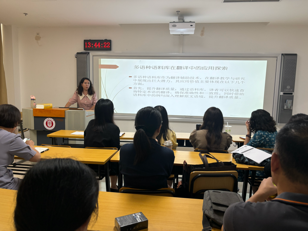 随后,吴碧宇教授分享了她在教学实践中独具匠心的翻译教学案例积累方法。她善于在日常教学中随时发现与记录富有价值的案例,始终如一、持之以恒,于今年3月由吴教授担任首席专家申报的《以译为媒,赋能MTI人才培养:中国主题图书翻译教学案例库建设》主题案例项目成功获得教育部主题案例征集项目立项。阿力亚老师也分享了她教学过程中经常使用的多个多语种翻译语料库平台,详细阐述了每个平台的使用方法与优势,她在备课和上课中的具体应用,以及如何利用这些多语种语料库平台进行思政教育等经验体会。