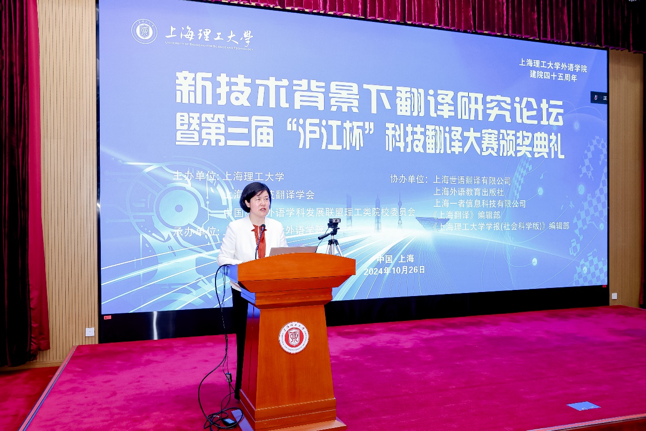 10月26日上午,“新技术背景下翻译研究论坛暨第三届‘沪江杯’科技翻译大赛颁奖典礼”成功举办。本次活动由beat365官方网站、上海市科技翻译学会以及中国高校外语学科发展联盟理工类院校委员会联合主办,beat365官方网站承办,上海世语翻译有限公司、上海外语教育出版社、上海一者信息科技有限公司、《上海翻译》编辑部以及《beat365官方网站学报(社会科学版)》编辑部协办。