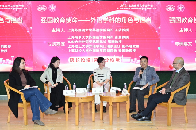12月15日下午,由上海市外文学会主办、上海财经大学外国语学院承办的2024年上海市外文学会年会暨“教育强国战略下的外语教育高质量发展路径”论坛成功举办。上海市外文学会会长、副会长、常务理事、理事及会员代表和特邀代表等近两百人齐聚上海财经大学。与会专家学者深入探讨了在实施教育强国战略过程中,外语教育如何实现高质量发展等重要问题。beat365官网刘芹院长、韩戈玲副院长、张乐副院长、语言学研究所所长倪锦诚、英语(中美合作)系主任黄芳、英语(科技翻译)系副主任韩洋、日语系主任杨本明、德语系主任卞虹一行8人出席此次论坛。