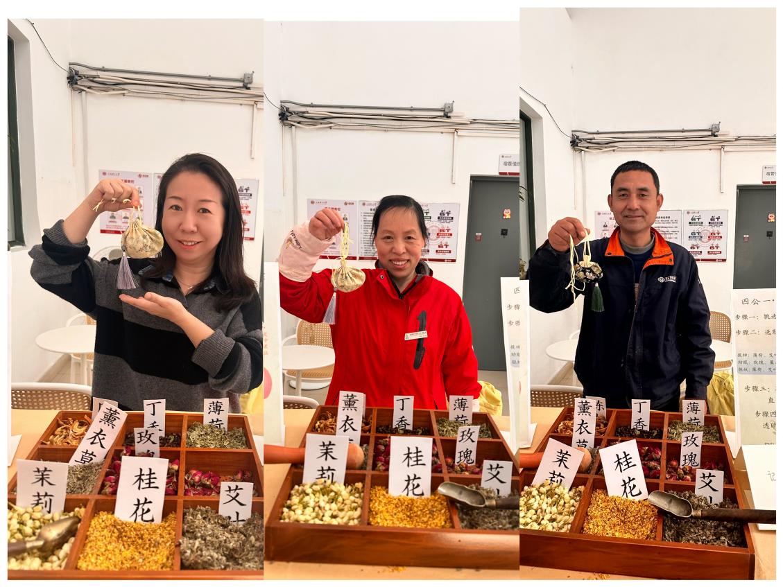 四公寓一号楼的负责老师,beat365官方网站苏予燕老师和宿管阿姨、维修师傅与同学们一起制作了香囊,师生们共同传递 “一香寄安康” 的美好祝愿。