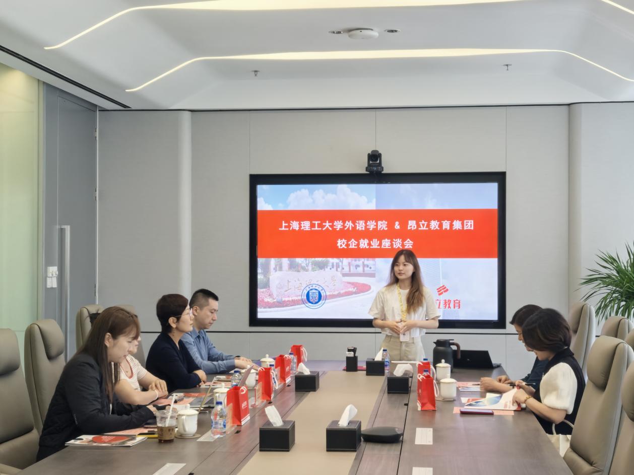 座谈会上,杨勤副总裁对母校领导和老师们的到来表示热烈欢迎。她表示,作为校友企业,昂立教育始终关注学院发展,期待未来能在实习基地共建、人才联合培养、课程内容优化等方面与学院开展更深层次、更富成效的合作,共同探索协同育人新路径。