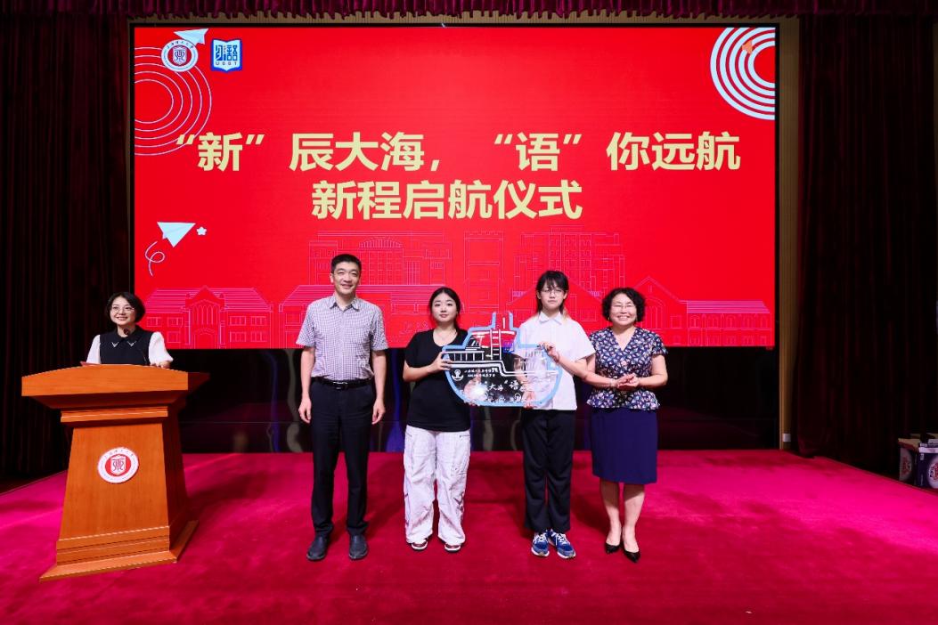 随后,全体新生在温馨的音乐中写下“心愿卡”,投递至象征启航的“2025新语号”船模中。学院副院长韩戈玲、张乐为新生代表赠送船模并寄语,勉励大家“从此扬帆,不负热爱”。