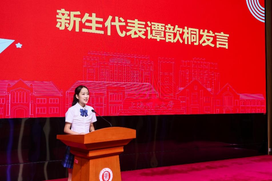 校学生会执行主席、2023级英语专业苏慧娜同学分享了她从迷茫到坚定的成长经历,鼓励新生勇敢尝试、不怕试错。新生代表谭歆桐同学则表达了对大学生活的憧憬与承诺,呼吁大家不仅做“语言的传声筒”,更要做“文化的解读者”。