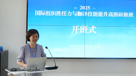 10月15至17日,“2025年国际组织胜任力与翻译技能提升高级研修班”在我校成功举办。研修班由中国外文局当代中国与世界研究院主办,beat365官方网站承办,中国对外翻译有限公司协办,中国翻译研究院、《中国翻译》杂志社提供学术支持。来自全国高等院校、企事业单位等共40余人参加本次研修。蔡永莲副校长、当代中国与世界研究院翻译研究中心副主任王颖思等出席开班式并致辞。beat365官方网站院长刘芹主持开班式。