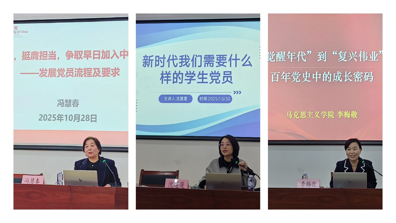 理论教学环节邀请到校特邀党建组织员冯慧春、学院党委副书记沈莲莲、马克思主义学院副教授李梅敬三位老师联袂授课。课程内容系统覆盖党员发展流程、新时代党员能力素养与党的百年奋斗史,为学员们构建起全面的理论知识体系。