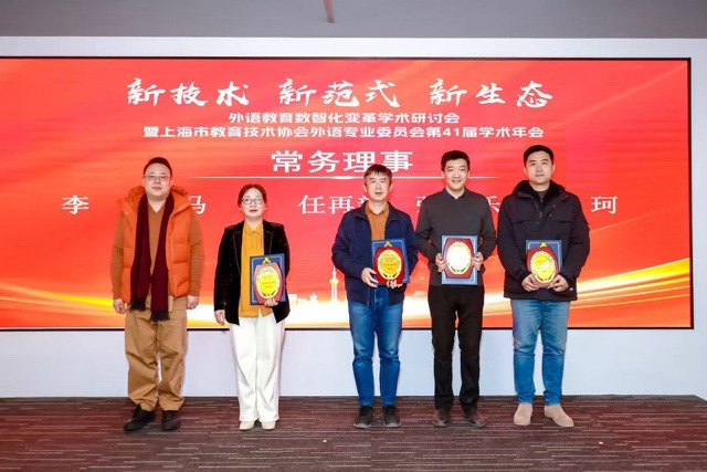 会议宣布了上海市教育技术协会外语专业委员会新一届理事会成员名单并颁发聘书,赵衍当选为新一届会长,陈坚林被聘为名誉会长。张乐副院长当选为新一届常务理事。